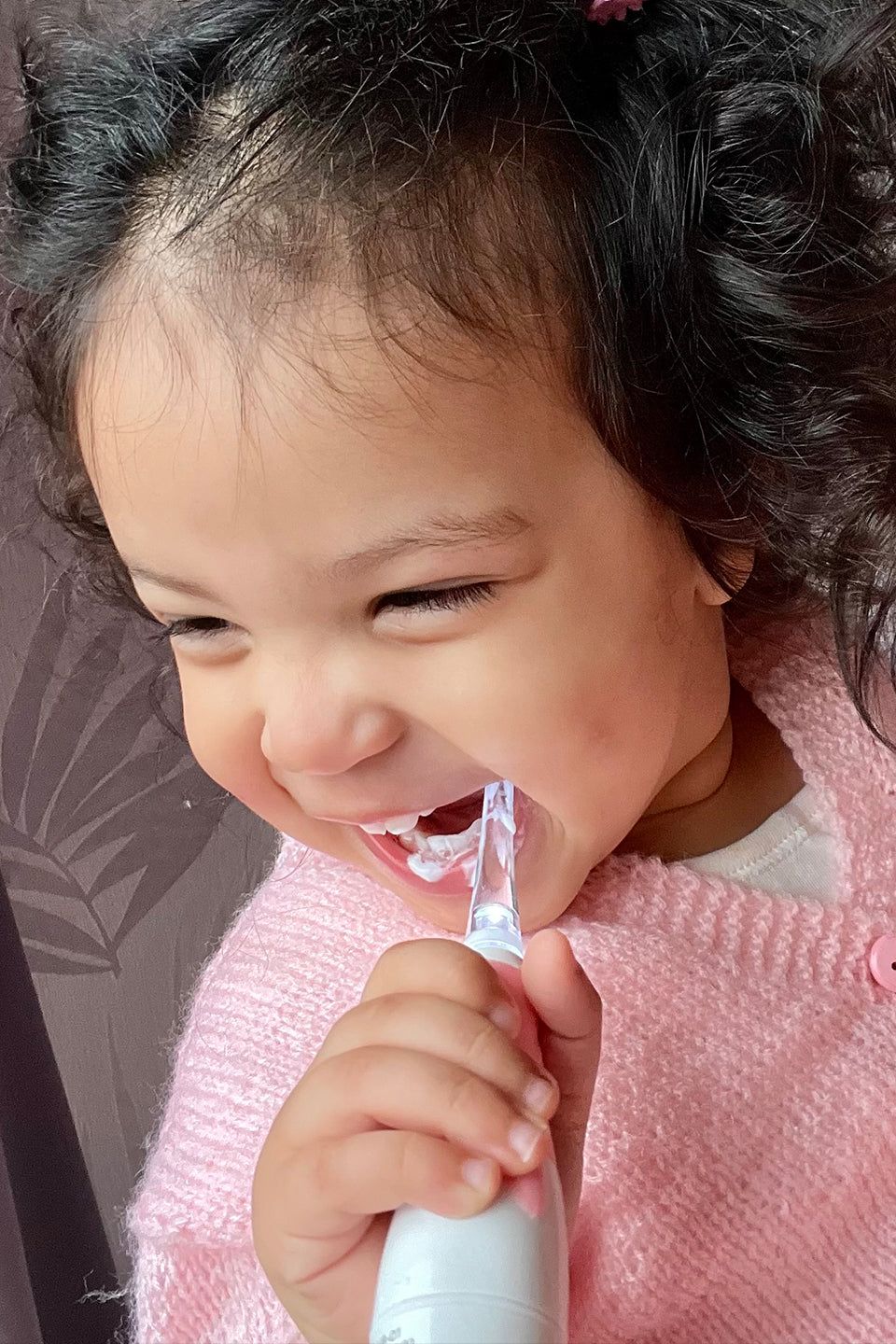 Klant foto Tandenpoetsen was iedere avond één groot gevecht maar met deze tandenborstel wil ze eindelijk haar tandjes poetsen