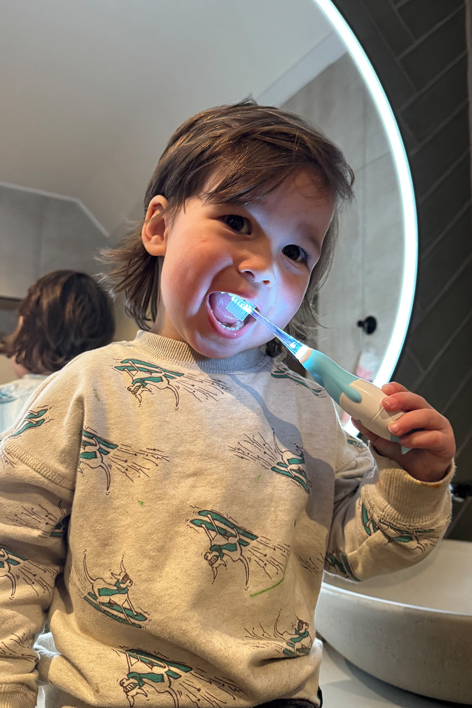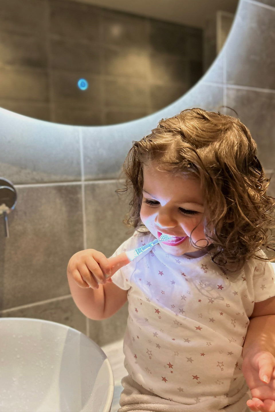 Naast alle praktische voordelen hebben we ook een vrolijk disco-lichtje toegevoegd. Hierdoor wordt tandenpoetsen ineens spannend, leuk en iets om naar uit te kijken.