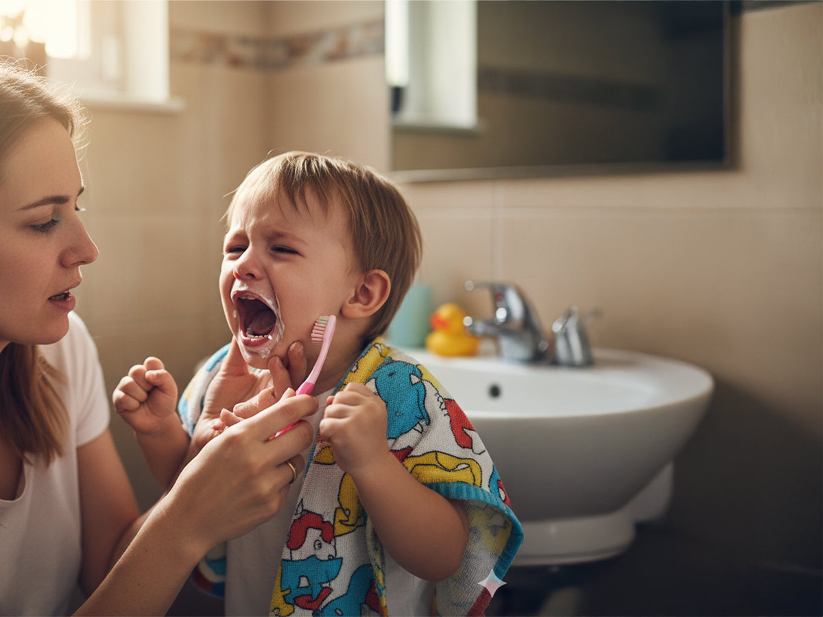 Tandenpoetsen iedere avond drama? Dat komt omdat jonge kinderen het poetsen vaak onprettig of spannend vinden. Gewone tandenborstels voelen te hard aan, het gekriebel op het tandvlees is nieuw, en kinderen begrijpen nog niet waarom het moet. Daardoor klemmen ze hun mond dicht, draaien hun hoofd weg of beginnen te huilen. Heel herkenbaar voor bijna elke ouder.