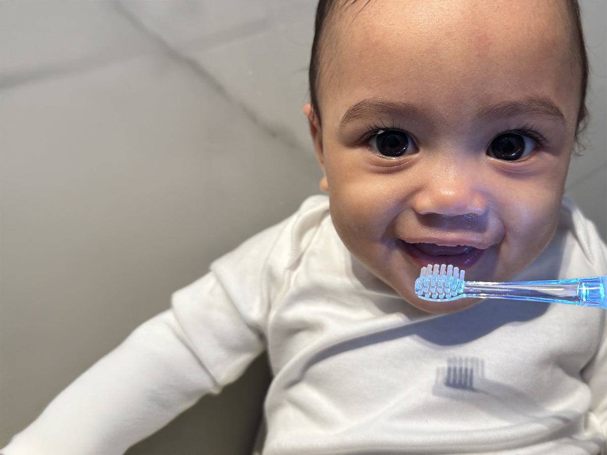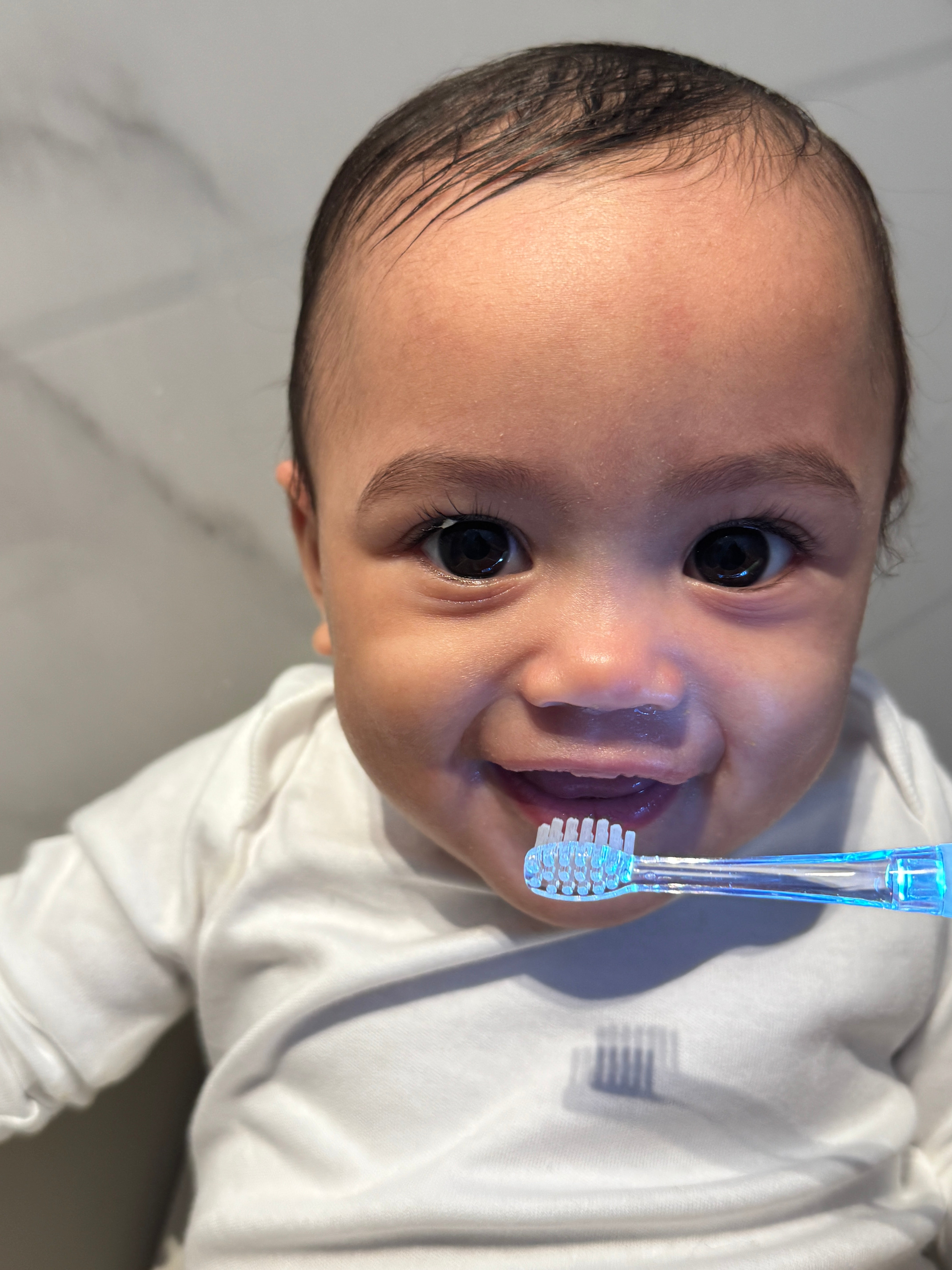 De tandenborstel nu een paar dagen in huis. En wat een verschil! Ons kindje van 13 maanden vindt tandenpoetsen geen probleem meer.